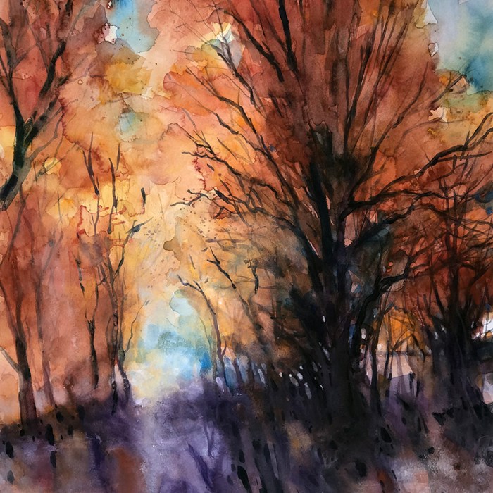 In this painting, I am interested in leaves, their lightness, their colours, their moving around the wind. I took the moment when, through the fronds, they could see red berries, almost as glowers of Etna’s lava. I was very impressed by this vision that I […]