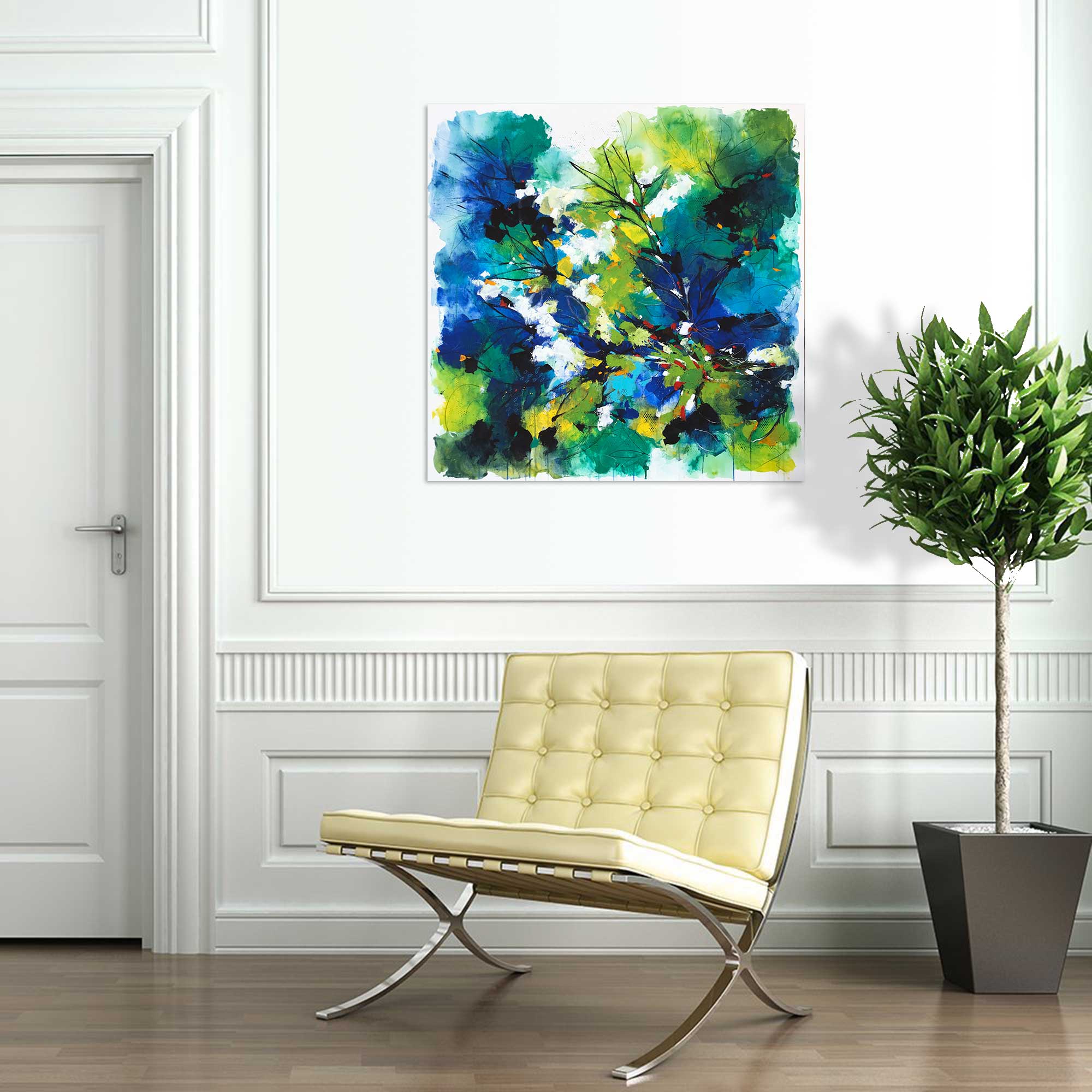 Original one of a kind 100×100 cm acrylic mixed media painting on 4 cm thick wrapped canvas. Painting no needs to frame if you prefer the contemporary look. All artwork is created with professional high quality materials and protected with a museum quality varnish. Wired and ready to hang upon arrival. Certificate of Authenticity included.
