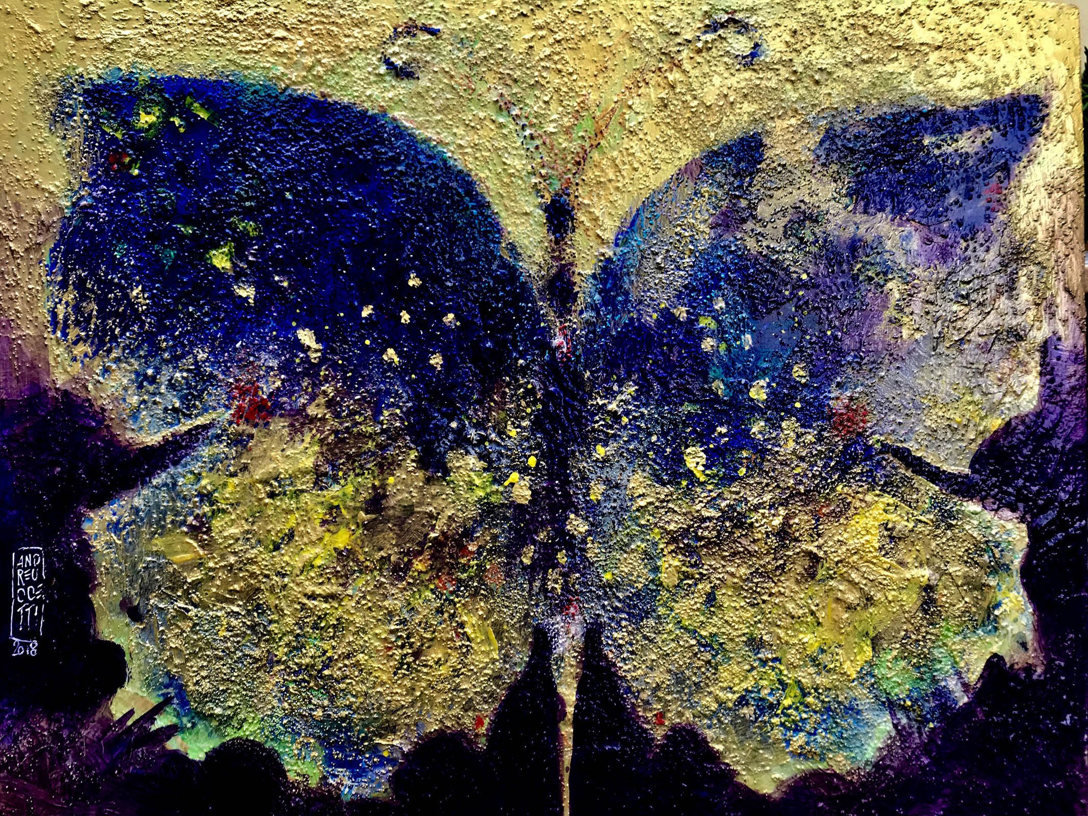 Alessandro con estrema cura e perizia tecnica coltiva il suo giardino privato, un mondo naturalistico riservato dove si dispiegano le ansie e le inquietudini del vivere e perché no? anche i sentimenti di gioia, felicità e leggerezza, come farebbero supporre le sue farfalle.