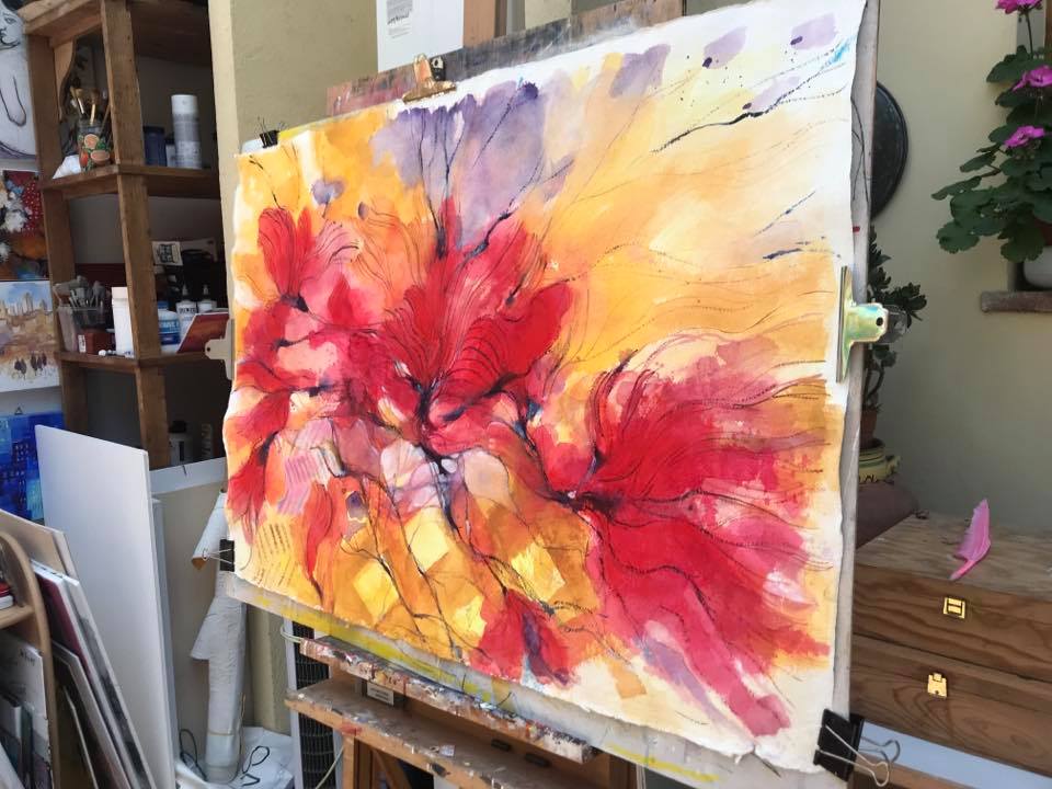 Watercolors on large sheet of indian handmade rag paper, approx 40×30″