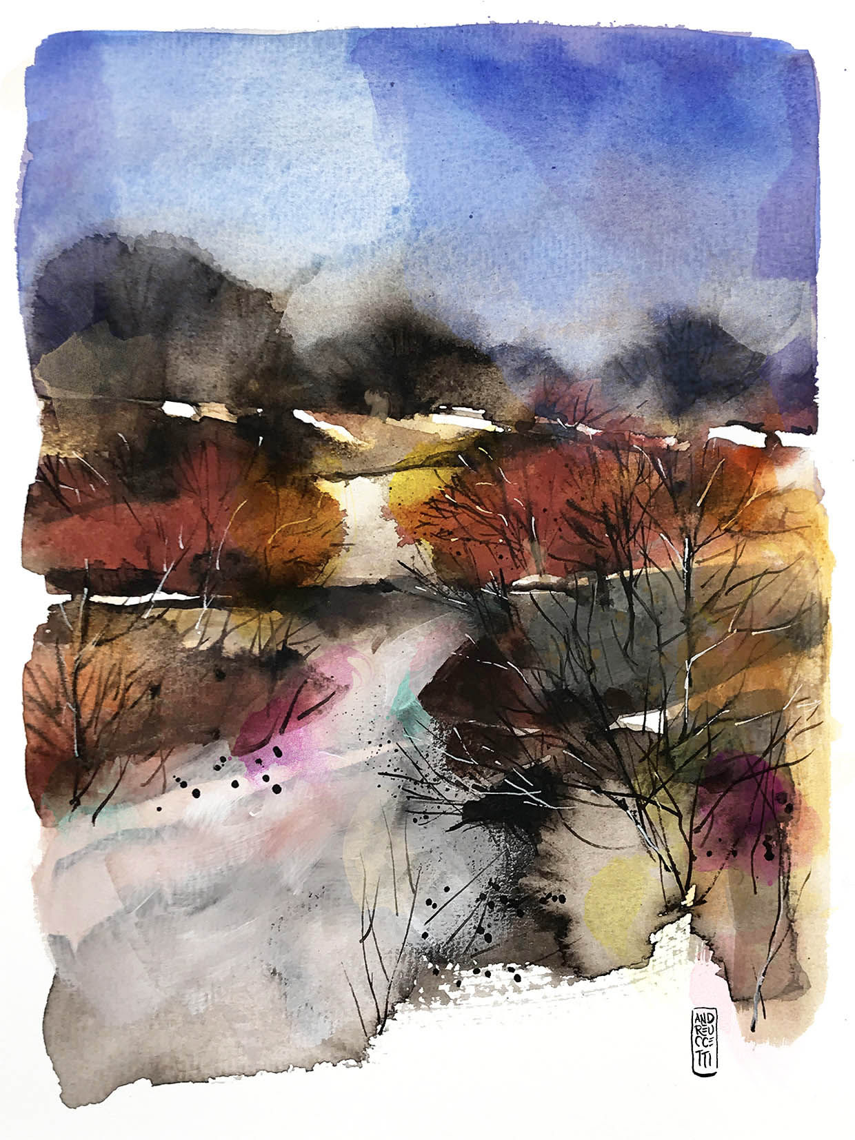 Nato a San Gimignano ha studiato arte e architettura a Firenze e quindi ha iniziato a lavorare come disegnatore nel 1980. Attraverso i suoi lavori rappresenta la vita che ci circonda, i suoi soggetti preferiti sono le figure umane e la natura. La sua ricerca è rivolta soprattutto a scoprire le relazioni tra forme, colori e textures. Le figure fissate in pose e atteggiamenti che ne individuano lo stato d’animo, suggeriscono la loro personalità attraverso un attento studio della composizione e del design della tavola; la natura nella sua varietà di alberi, fiori, cespugli, foglie è esplorata da vicino attraverso un processo di astrazione, come con un obiettivo per macro fotografia, per dare maggiore personalità alle composizioni. Le idee Ogni dipinto ha una sua storia e una sua personale gestazione. Tutto può contribuire alla scintilla iniziale, una foto, una frase, una musica. Prima di iniziare passa molto tempo pensando al design generale della nuova tavola, agli schemi di colori da utilizzare, a cosa mettere in evidenza e cosa lasciare in secondo piano. Generalmente prende molti appunti e schizzi, prova dei colori, ombreggiature, scompone il soggetto in porzioni che poi ricompone diversamente, schematizza varie soluzioni compositive. Tutto questo processo può durare giorni oppure settimane però quando è il momento di dipingere il lavoro viene giù filato senza ripensamenti. I materiali Opere su carta. Utilizza gli acquarelli su carta fatta a mano con stracci di cotone, è una carta bellissima, importata dall’India, pesante e rugosa, con una sua forte personalità che richiede molta attenzione ed esperienza per padroneggiarla. Opere su tela. Olii e acrilici permettono di lavorare in maniera analoga agli acquarelli su superfici diverse dalla carta e garantiscono grande libertà espressiva.