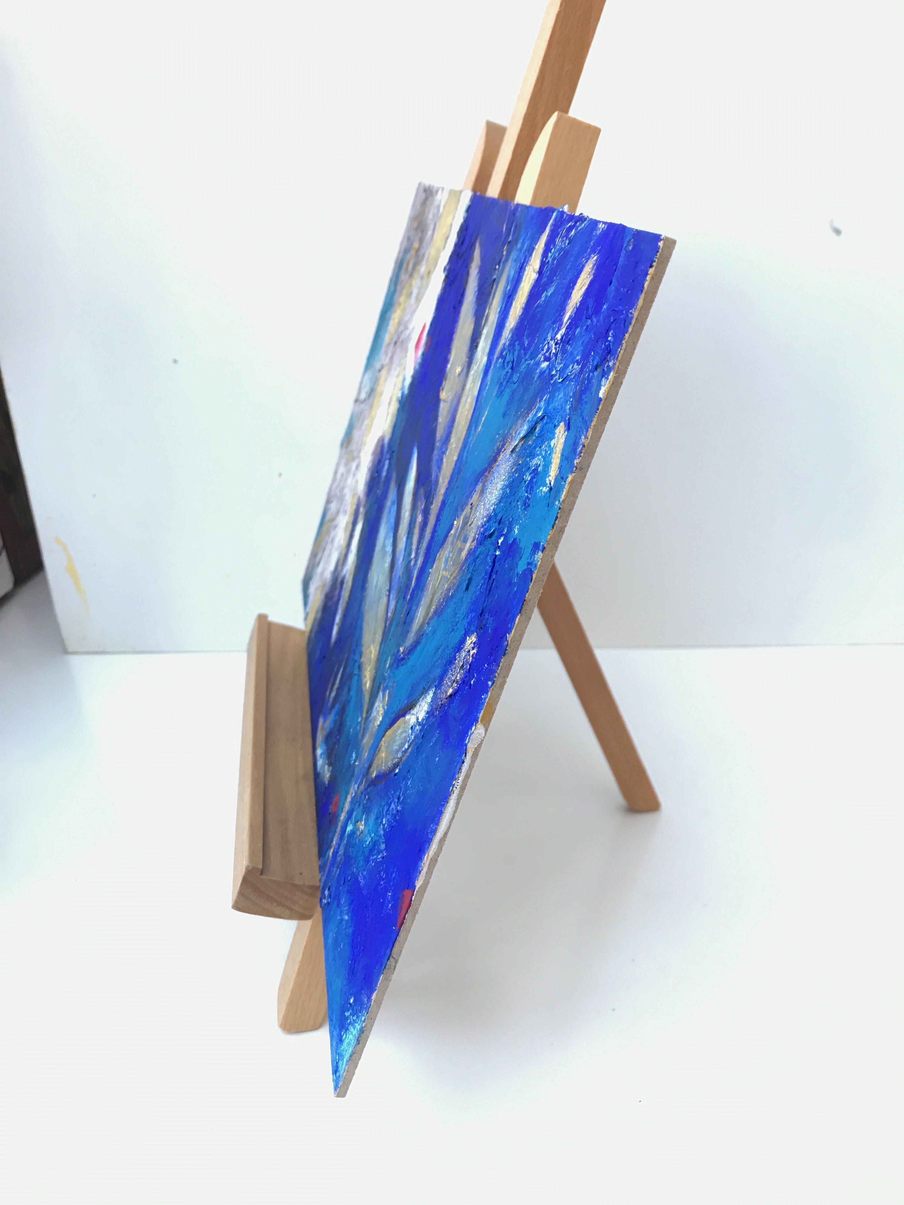 Circa la simbologia cromatica, il blu incarna la profondità dell’essenza umana, il principio del femminile, la calma e la serenità del flusso vitale che, in questo caso, si innesca con lo studio naturalistico.