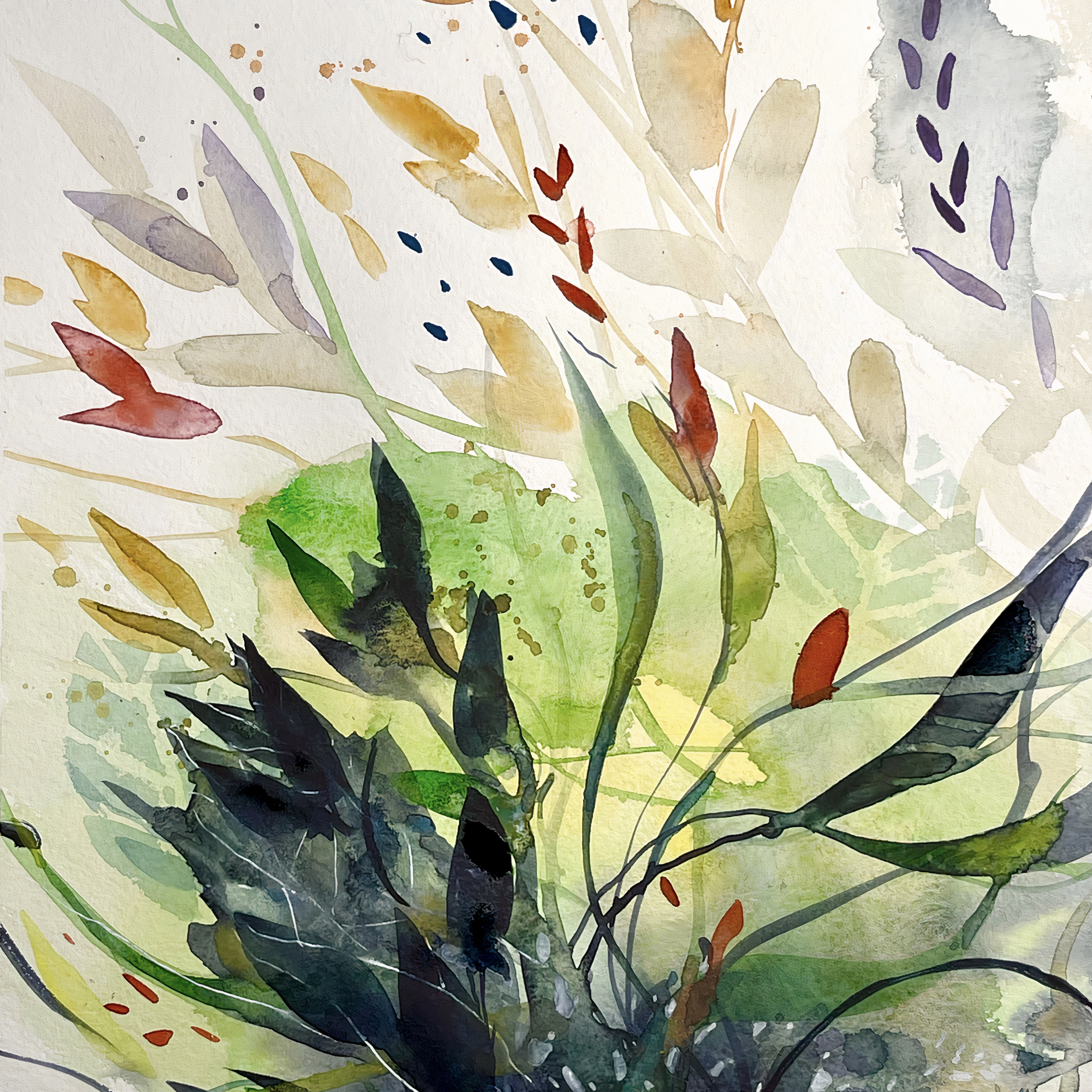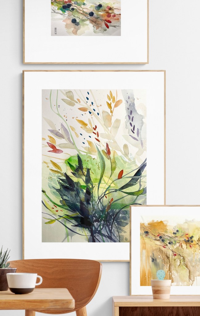 Opere su carta. Utilizza gli acquarelli su carta fatta a mano con stracci di cotone, è una carta bellissima, importata dall’India, pesante e rugosa, con una sua forte personalità che richiede molta attenzione ed esperienza per padroneggiarla.