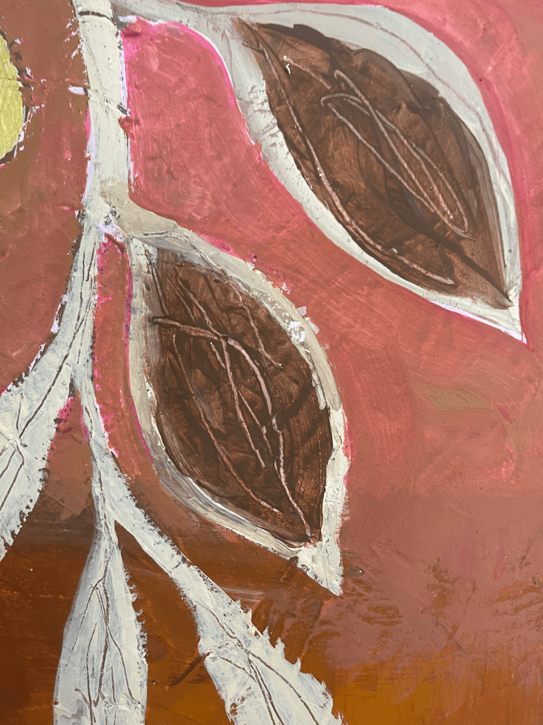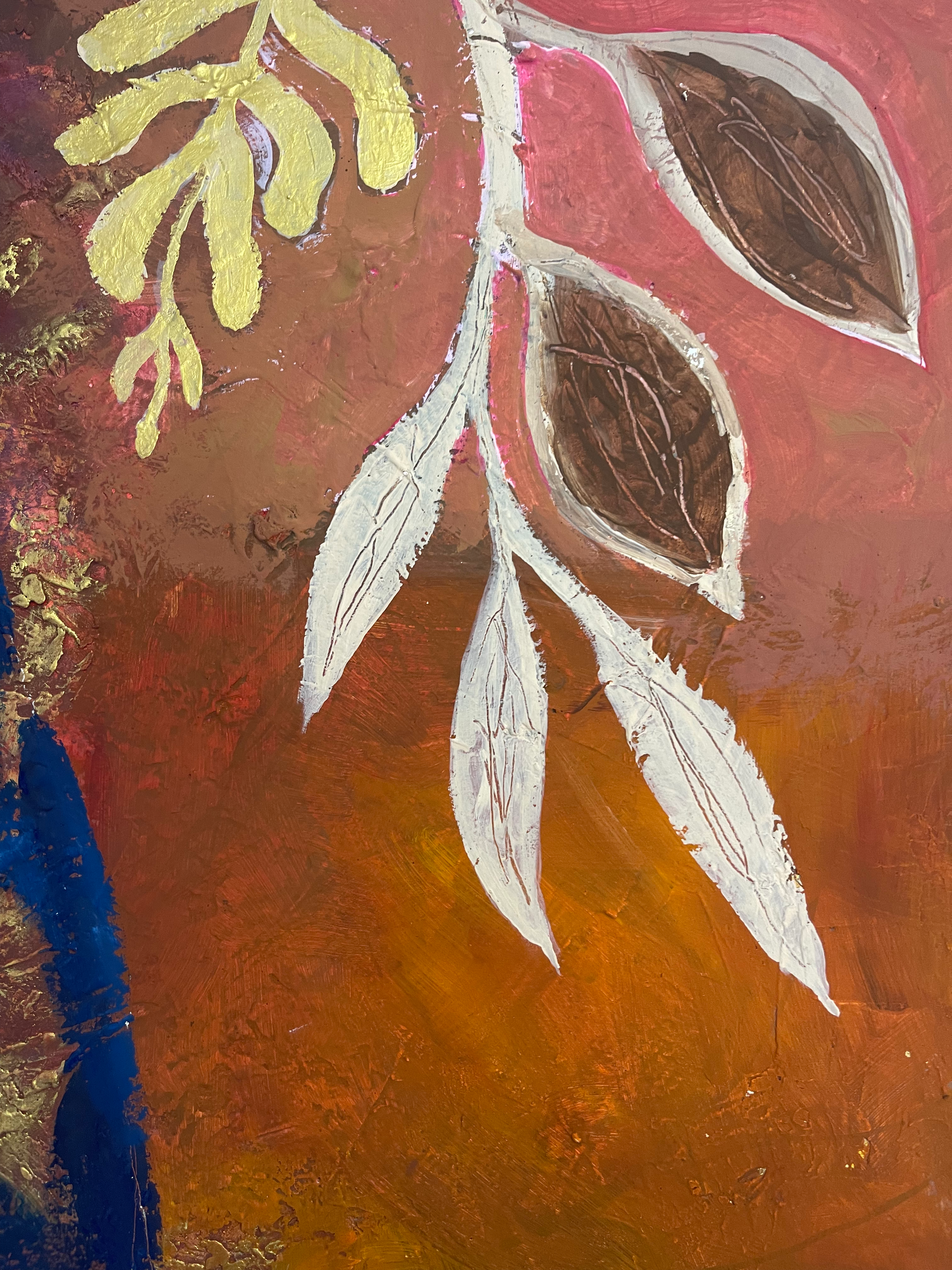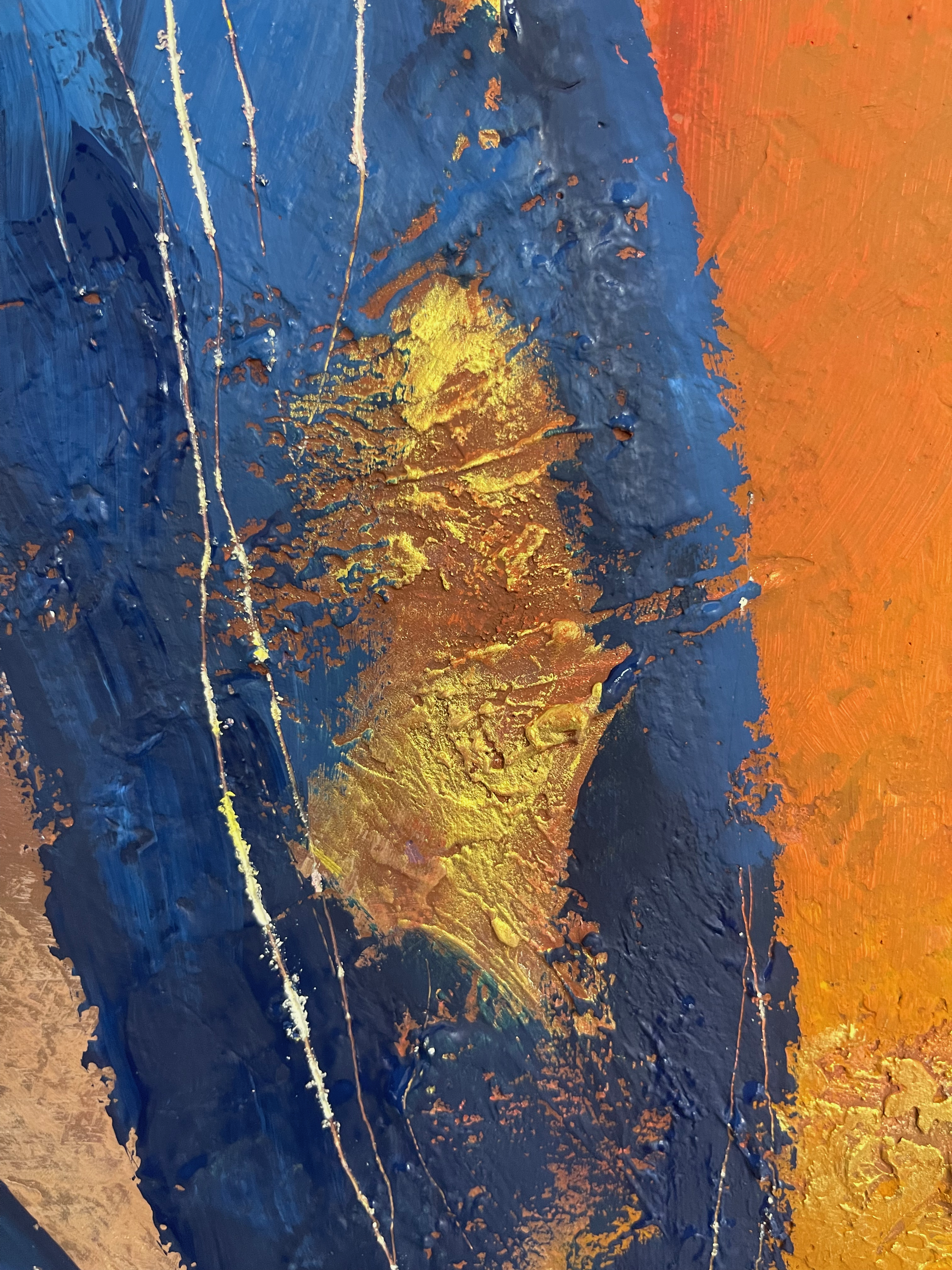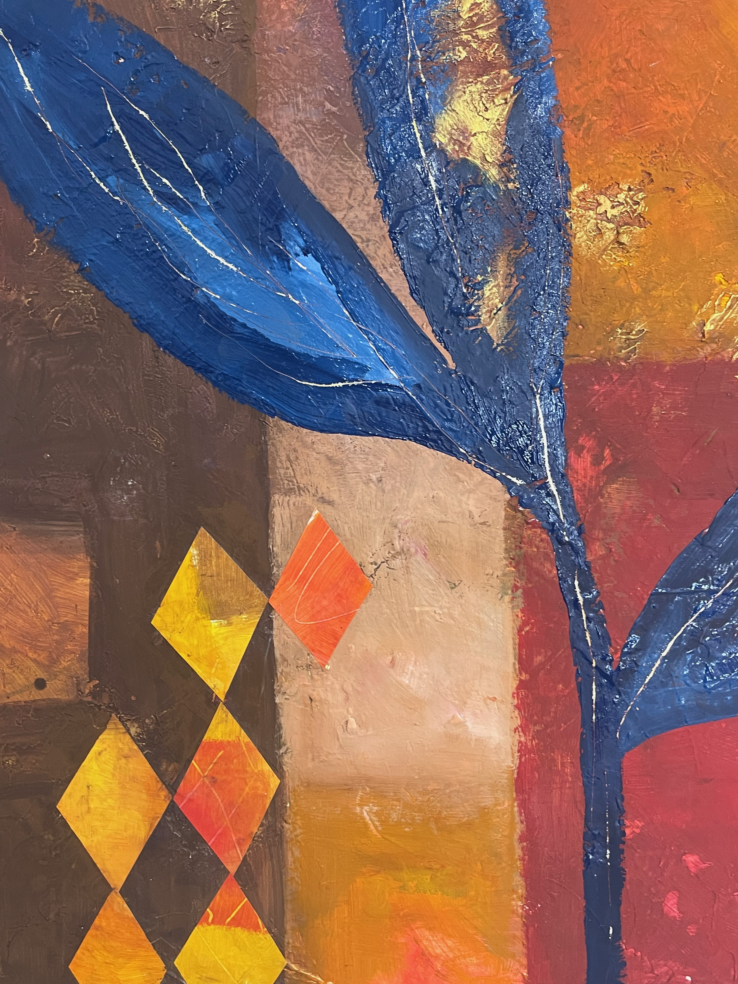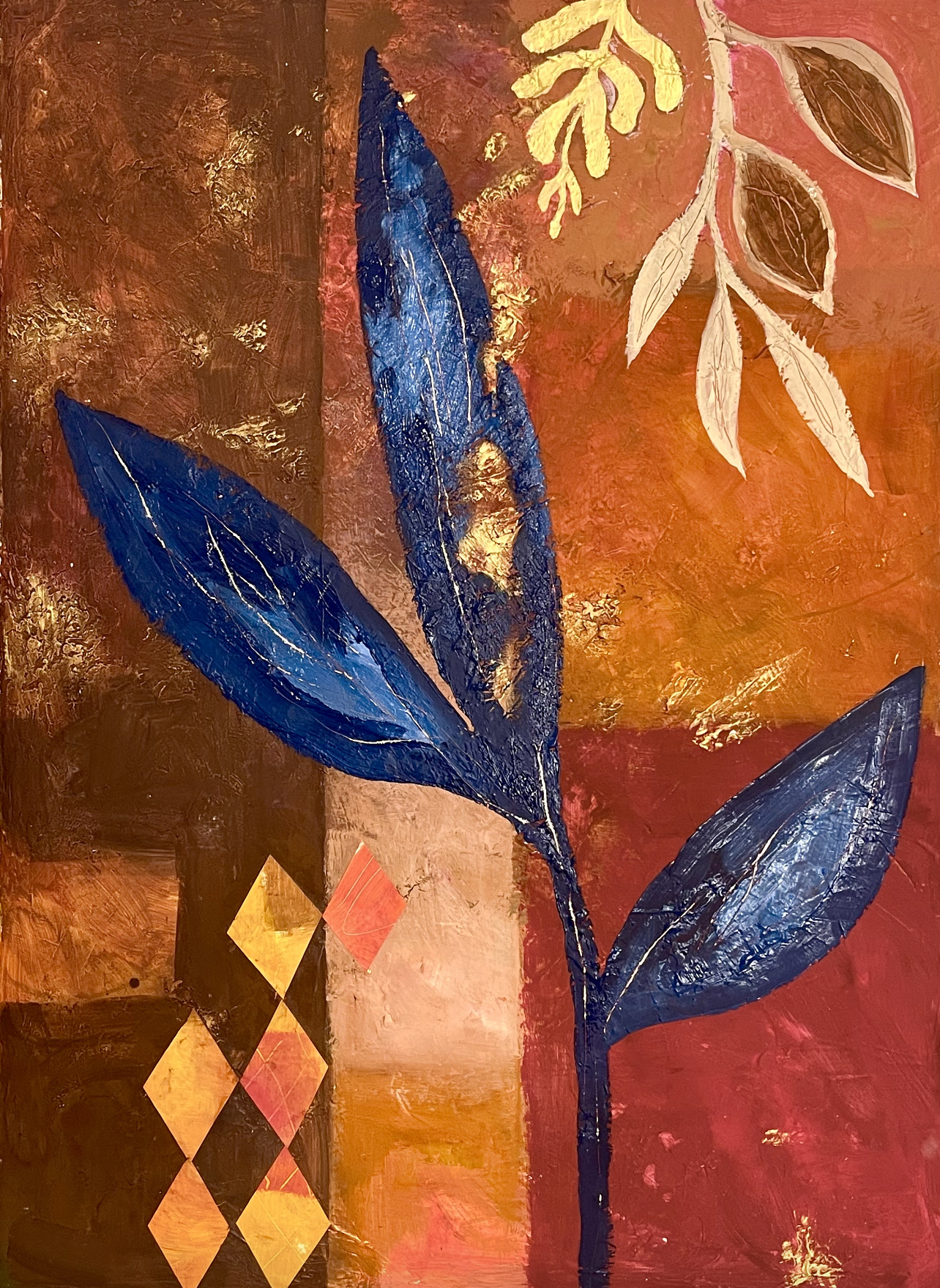 Acrylic paint, gesso, joint compound and collage on multilayer wood, 60×80 cm