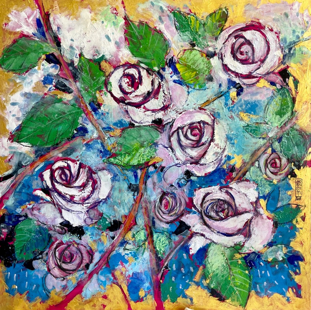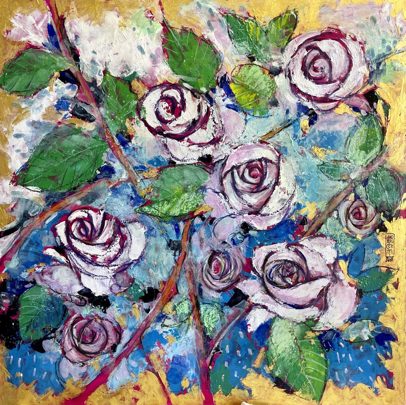 Acrylic paint and gold on board, 50×50 cm