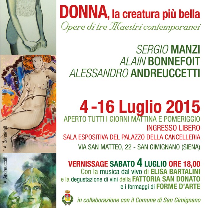 “Donna, la creatura più bella” Opere di tre Maestri Contemporanei: Sergio Manzi, Alain Bonnefoit, Alessandro Andreuccetti. San Gimignano, Palazzo della Cancelleria