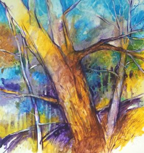 - Watercolours on canvas