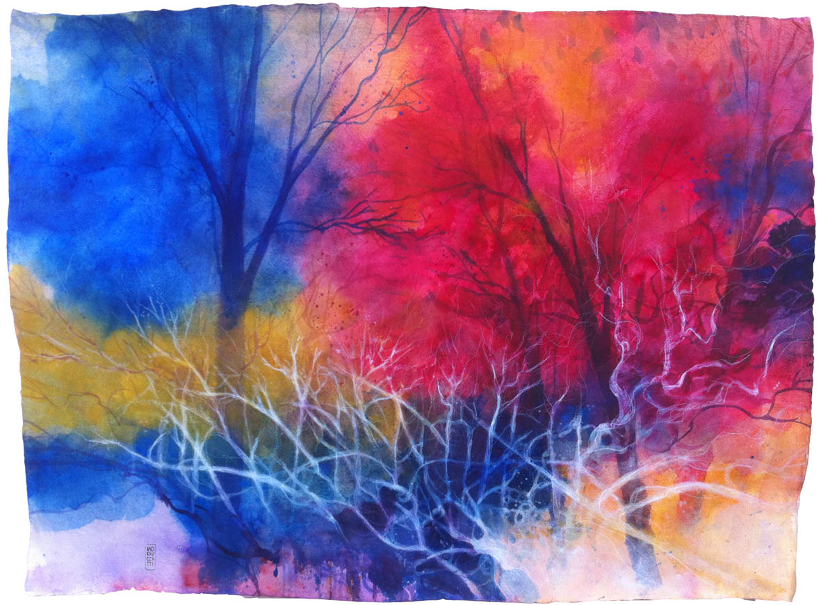 - Watercolours on canvas
