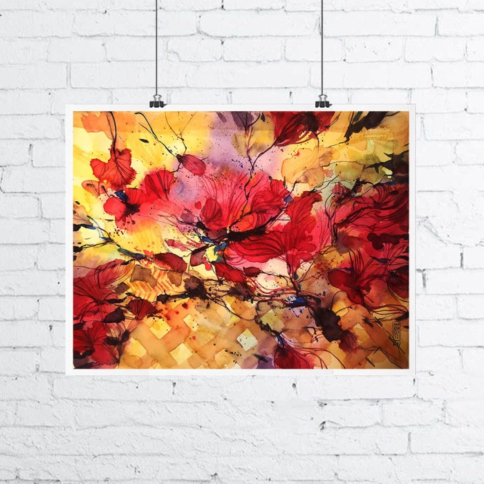This is an abstraction from a view of my secret garden where fantasy, imagination and curiosity merge to show a positive senso of the life. Painted by me on handmade cotton paper by Lorenzo Santoni in Fabriano