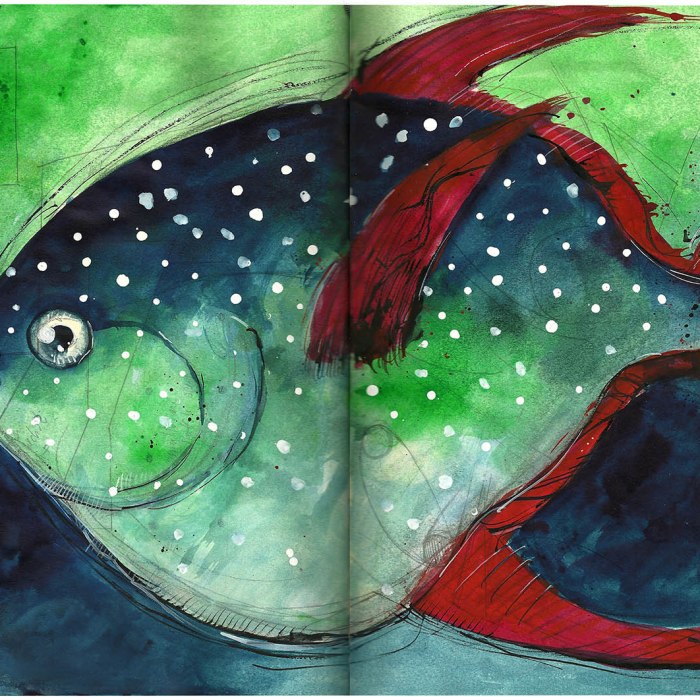 Watercolours and acrylic ink on moleskine paper A4, double page