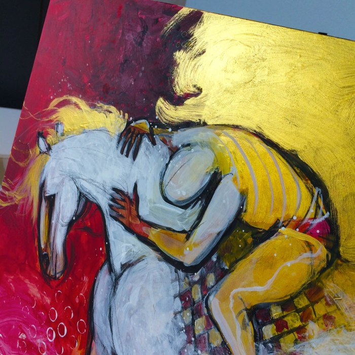 This painting was born after I saw a show of a circus here in Italy. I am very fascinated by the circus though I am not fond the use of animals, especially wild animals, but in this case the rider and his horse made up […]
